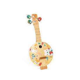 ¡Todo por la música! Este bonito banjo de madera con dibujitos de animales del bosque está diseñado para las manitas de los niños a partir de 3 años. Podrán descubrir poco a poco la música y estimular así su sensibilidad artística y su memoria tratando de reproducir los diferentes sonidos de las cuerdas. ¡Este juguete de imitación hará las delicias de niños y padres! Las clavijas de afinación tienen forma de pájaros y el banjo está adornado con unas preciosas ilustraciones que destacan en este instrumento musical de juguete que deja ver la madera original. El banjo incluye tres prácticas cuerdas de repuesto.