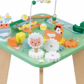 ¡Un todo en uno para las mentes más curiosas! Mantén entretenido a tu pequeño explorador con esta impresionante mesa y sus 7 actividades diferentes para desarrollar la motricidad y la coordinación: 2 animales para apilar, 1 laberinto con un pato que se pasea por la charca, 1 sistema de engranajes, 3 cubos de encajar, 1 ábaco y 1 xilófono de metal con dos baquetas. ¿Qué más se puede pedir?