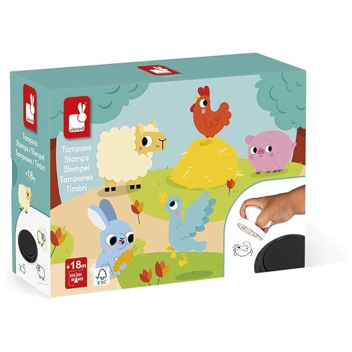 - STAMPINOO DE JANOD: ¡Despierta su creatividad! Con Stampinoo, dibujar, estampar y personalizar será un juego de niños a partir de 18 meses. Una actividad creativa y también educativa para ejercitar la destreza, la precisión y la paciencia de los niños pequeños.
