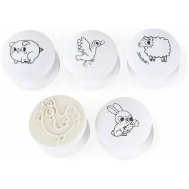 - MIS PRIMEROS SELLOS: Este set consta de 5 sellos sobre el tema de los animales de la granja y un tintero extragrande. Estos sellos de espuma de fácil manejo han sido especialmente diseñados para niños a partir de 18 meses. Diámetro de los sellos: 5 cm. Color de tinta: negro. La tinta es lavable en los tejidos y en las superficies lisas no porosas.