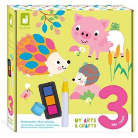 - CARACTERÍSTICAS: Este kit Janod contiene 4 cuadros, 1 tintero para dedos (3 colores), 1 sello, 4 cuadros de pintura mágica, 1 rotulador con depósito de agua y 1 folleto de instrucciones. Dimensiones: 20 x 0,1 x 20 cm. Manualidad para niños de 3 a 5 años