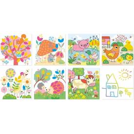 - DECORA Y COLOREA: Este kit creativo propone 2 actividades distintas: 4 cuadros de animales se completan con tinta de dedos y el sello (1 h 30 min por cuadro) y 2 cuadros reversibles (4 ilustraciones) con el rotulador de agua (unos 30 min cada una).