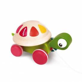 Juguete de madera para niños de 12 a 36 meses. Pintura al agua. Un magnífico juguete de aprendizaje que ayudará a su hijo a desarrollar sus capacidades motrices. Cuando su hijo pasee a su tortuga, las ruedas harán que el caparazón cambie mostrando los bonitos colores del arco iris.