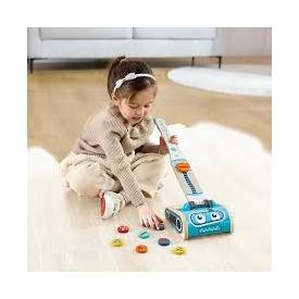 ¡Vamos a dejar el suelo reluciente con esta divertida aspiradora robot! A los pequeños les encantará pasar la aspiradora por encima de las piezas basura y ver cómo desaparecen. ¡Parece una aspiradora de verdad! Y una vez esté todo limpio, podrán abrir la puertecita para sacar las piezas y volver a jugar una y otra vez.