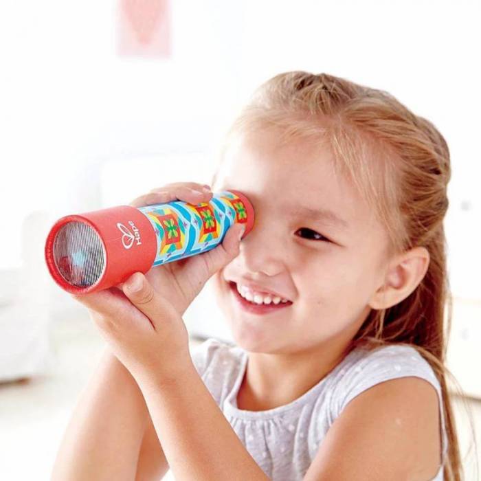 Características: Caleidoscopio de temática retro. Al girar su extremo, se crea un conjunto ilimitado de patrones y colores