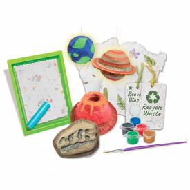 ¿Te gustaría aprender a reciclar papel? Sólo necesitarás papel usado y este kit de reciclaje. ¡Será muy divertido! Y una vez terminado, podrás poner en marcha toda tu creatividad convirtiendo las hojas en bonitas cartas, postales y etiquetas. O bien, podrás crear planetas, fósiles y hasta un volcán, gracias a la técnica de papel maché y los moldes que incluye el kit. ¡Hasta podrás pintar los planetas con pintura fluorescente, para que brillen en la oscuridad!