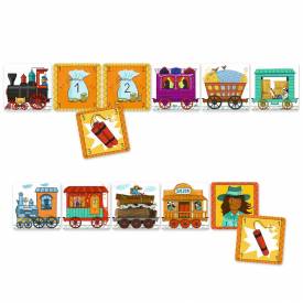 Las compañías ferroviarias están librando una dura batalla por ser la que tiene los trenes más largos. En este juego de memoria y ataque, sé estratégico y despliega tus mejores recursos para atacar los carros de tus competidores sin que te atrapen los Sheriffs. Una caja de juegos compacta, un juego de viaje para llevar a cualquier parte. La caja del juego contiene 58 cartas y las reglas del juego en 10 idiomas.