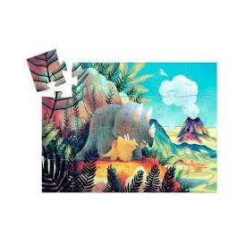 Teo el dinosaurio nos enseña dónde vive con su mamá. Un magnífico puzle de 24 piezas en una elegante caja con forma de dinosaurio.