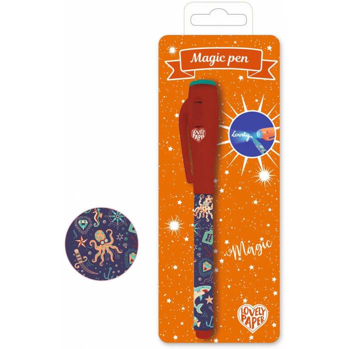 Con este bolígrafo mágico, los niños podrán escribir mensajes secretos con tinta invisible que solo podrán verse si se alumbran con la lámpara ultravioleta del tapón.
