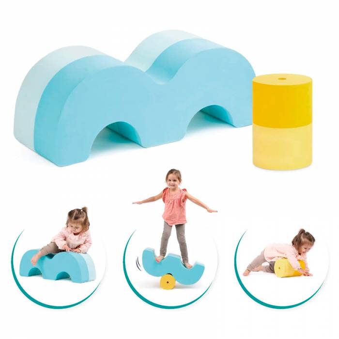 Este set está formado por un módulo cilíndrico y un módulo con formas curvas muy ligeros, seguros, sólidos, suaves y resistentes.