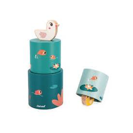 - La box también incluye una pirámide redonda con 3 partes inspirada en el estanque con 2 figuritas de patos de madera: ¡ideal para estimular la motricidad fina y fomentar la interacción con el bebé!