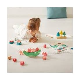- En primer lugar, un juego de equilibrio de madera con forma de cocodrilo: el objetivo es apilar encima tantas hojas de madera como sea posible, de las 12 incluidas. ¡Son de 2 tamaños diferentes para mayor dificultad! Hay 2 formas posibles de jugar: solo o acompañado o bien apilando la hoja que salga al tirar el dado incluido.