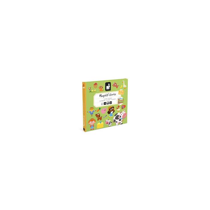 ¡Quiquiriquí, granjerito! El niño puede visitar la granja a partir de 3 años con este decorado magnético ilustrado en el que las cosechas conviven con los cerditos. Este juego magnético consta de un decorado magnético y 30 imanes. La motricidad fina, fundamental en los primeros aprendizajes de los niños, se trabaja al agarrar las piezas magnéticas. La imaginación no se queda atrás: cada imán, una vez puesto en el decorado, invita al niño a inventarse sus propias historias. Los cerditos se revuelcan en el barro, las ovejitas saltan la valla, el granjero se va a cosechar subido en su tractor verde… ¡Un montón de divertidas escenas que cobrarán vida en la cabeza del pequeño! ¡Y es genial porque el decorado se puede poner en vertical para que el niño te cuente sus historias! Además, ese decorado es plegable, lo que facilita su transporte… Ninguna barrera, ni siquiera la de las ovejitas, se interpondrá entre el pequeño y su imaginación. Este tablero magnético forma parte de la gran colección de Magnéti'stories, auténticas invitaciones a la imaginación y a la ensoñación. Este juego magnético está fabricado con cartón con certificado FSC™ y materiales homologados.