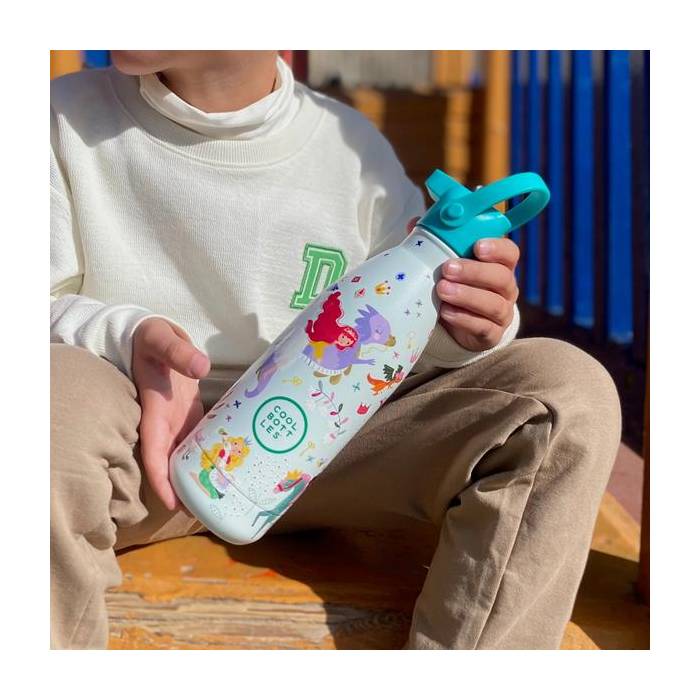 Botella de acero inoxidable 8/18 con diseño infantil estampado de calidad Premium.