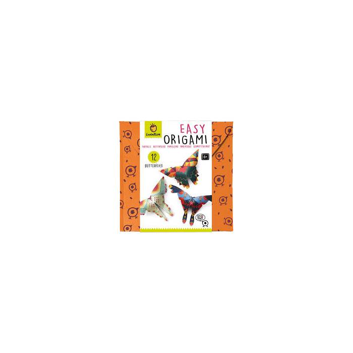Set creado específicamente para permitirles a los niños más pequeños también ponerse a prueba en el arte del origami. De una manera sencilla y divertida, se pueden realizar 12 coloridas mariposas. El niño dobla el papel siguiendo las instrucciones ilustradas de la guía y después recorta y pega los elementos típicos de cada mariposa. Después de doblarlas, el niño puede jugar a mover delicadamente sus alas o usarlas como decoración para su habitación. Un juego que desarrolla la capacidad de concentración, la motricidad fina y la lógica, pero también la imaginación. El juego se guarda en una suave y colorida bolsa de paño, muy cómoda de abrir y cerrar.