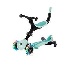 GO•UP ACTIVE LUCES 360° es un patinete evolutivo 3 en 1 con asiento, luces y un sistema patentado de dirección parental en 360°, ideal para niños de 15 meses a 9 años. Se transforma fácilmente en paseador, bicicleta de aprendizaje y patinete. Además, está fabricado con un 34% de plástico reciclado certificado (GRS), reafirmando el compromiso de Globber con la sostenibilidad y el cuidado del planeta. Dirección parental en 360°: comodidad total El revolucionario sistema de giro trasero patentado facilita los paseos diarios. En el modo paseador, los padres pueden guiar a sus hijos con maniobrabilidad en 360°, brindando una experiencia más fluida y práctica. ¡Disfruta de la libertad de movimiento total!