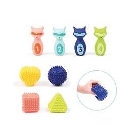 Las diferentes texturas de los juguetes y sus colores vivos fomentan la motricidad fina, la destreza y la agudeza visual de su hijo al tiempo que estimula su imaginación.