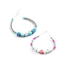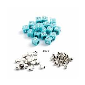 Una caja muy completa que contiene 1.000 cuentas para crear bonitas pulseras con nombres o mensajes. Un surtido de perlas de colores y plateadas, bien pensadas para un resultado siempre armonioso. El niño sube las cuentas a los hilos elásticos para hacer bonitas pulseras con total libertad.