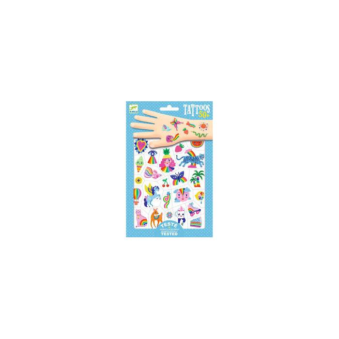 Completa tu look con estos encantadores tatuajes con coloridos dibujos con motivos arco iris Neón