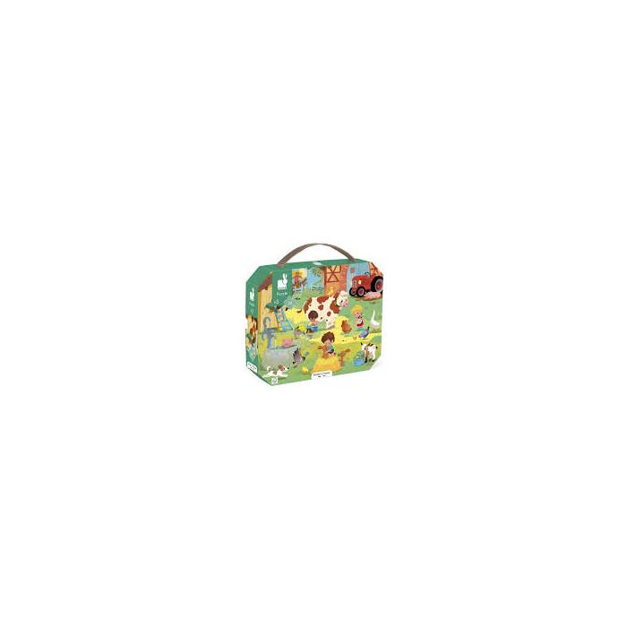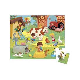 ¿Listos para una excursión a la granja? ¡Un tractor, una multitud de animales y muchos detalles divertidos esperan a tu hijo para entretenerse con una actividad divertida y lúdica! Encuentra a los animales de la granja en este puzle de cartón de 24 piezas. Las piezas son aptas para las manos infantiles a partir de los 3 años: ¡resultan muy fáciles de manipular! Pero ¿cuál es ese animal? ¿Qué hacen los conejitos? Una divertida ayuda para desarrollar la memoria y la destreza de los pequeños. Este puzle lleno de vida viene con un póster que sirve de plantilla: ¡práctico para recomponer el puzle a tu propio ritmo! Viene en un bonito maletín con asa, para poder guardar y transportar las piezas con facilidad. Este adorable puzle está fabricado en Francia. El material de base forestal en este producto es reciclado. Decorado con tintas vegetales, ¡este puzle promete largas horas de diversión!