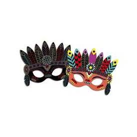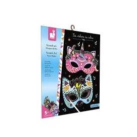 5 máscaras para rascar mediante una herramienta de madera, 5 gomas y 1 manual con modelos y instrucciones.