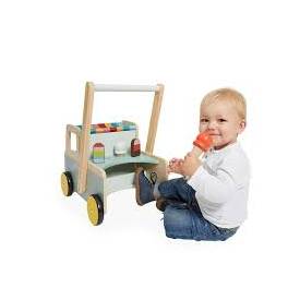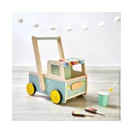 Carrito andador de madera con forma de camión de helados, de Janod.