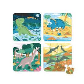 ¡Un viaje prehistórico espera a tus pequeños exploradores! Con estos 4 puzles evolutivos sobre el tema de los dinosaurios, los niños a partir de 2 años empiezan a explorar el Jurásico. Cada uno de los puzzles, compuestos por 6, 9, 12 y 16 piezas, acompaña al niño en su avance, estimulando así su motricidad fina y su concentración. ¡Un desafío apto para cada edad! Cada puzle tiene un color diferente en la parte posterior, lo que ayuda al niño a armar los 4 puzles. Además, las piezas grandes son perfectas para sus manitas, lo que hace que la experiencia de juego sea divertida y placentera. Es un divertido viaje en el tiempo: imagina la alegría del niño al juntar las piezas para revelar un majestuoso dinosaurio, mientras aprende a reconocer las diferentes especies. Es una excelente forma de combinar juego y aprendizaje. Estos prácticos puzles se venden en un maletín con asa, que permite al niño llevárselos a cualquier parte. Tanto de viaje como al ir a casa de la abuela, el pequeño podrá llevar siempre consigo esta tranquila y estimulante actividad. ¿Todo listo entonces para embarcarse en un viaje en el tiempo con nuestros puzles de dinosaurios? Estos puzzles se fabrican en Francia, se decoran con tintas vegetales y se hacen con cartón FSC™.