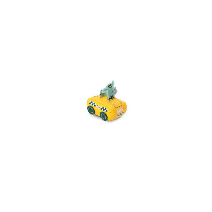 Coche de peluche que anda por efecto de la fricción, con diseño de taxi y dragón Joe, de Lilliputiens.