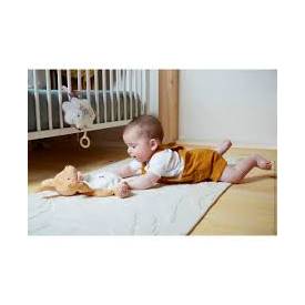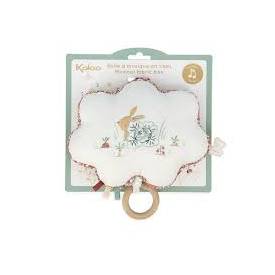 Kaloo, compañero de los primeros momentos presenta una gama de cojines musicales y marionetas. Las canciones infantiles acompañadas de gestos estimulan el lenguaje, la atención y la curiosidad, pero también el desarrollo motor de los más pequeños. Dé vida a la marioneta al son de la música para compartir un momento especial con el bebé. ¡Que empiece el descubrimiento! La caja de música de tela delicadamente estampada y bordada con la temática de "Un Conejito" es un elemento clave para el desarrollo del bebé. De hecho, si tira de la anilla del final de la cuerda, escuchará la canción infantil "Un Conejito" para que pueda cantársela al bebé. Su pequeño tamaño de 15 cm y su cinta permite llevarla y engancharla en cualquier lugar. La caja de música es resistente al agua, por lo que puedes lavar fácilmente el cojín a mano sin riesgo.