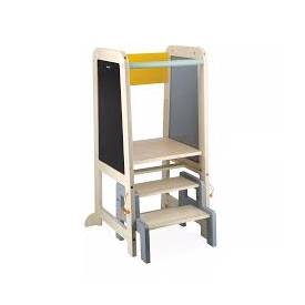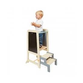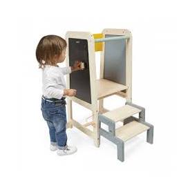 ¡Abran paso a la autonomía vista desde arriba! Esta torre de observación de madera diseñada para niños a partir de 18 meses les da la independencia y seguridad que necesitan para descubrir el mundo. ¡Es una torre de aprendizaje ergonómica y funcional, además de lúdica con su pizarra negra con 2 tizas y 1 borrador! A toda la familia le encantará esta atalaya infantil multifuncional. ¡El bebé ejercitará su motricidad y se volverá más autónomo cada vez mientras se divierte dibujando en su torre de vigilancia de madera una y otra vez! Para seguir al niño a medida que crece hasta los 3 años, esta torre de observación evolutiva incluye un escalón, que se sujeta a la estructura por los lados y se puede utilizar independientemente como taburete. Además, para que sea aún más adaptable, se puede regular la altura de esta torre multiusos: ¡tiene dos niveles fácilmente adaptables de 32,5 cm y 40,5 cm! El grosor de las piezas de madera hace que esta torre de observación sea un juguete de estímulo sólido y seguro para los peques. Su estilo atemporal y sus bonitas formas redondeadas permiten instalarla en todos los lugares estratégicos de la casa, como la cocina o el lavabo. Práctico y pedagógico, este mueble infantil sirve a los más pequeñitos para evitar la frustración al poder situarse a la altura de una mesa o de una encimera y participar en las tareas cotidianas.