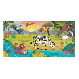 Al apretar los botones incorporados en las páginas, los pequeños podrán escuchar los sonidos de animales de parajes de todo el mundo: lobos en lo alto de las montañas, macacos en la selva, hipopótamos en la sabana africana y muchos otros. Las páginas del libro tienen ranuras, troqueles y otros elementos táctiles.