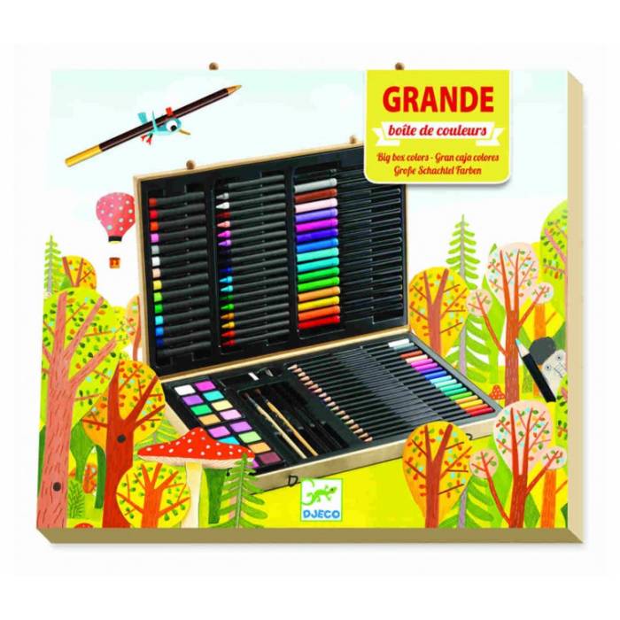 Este completo maletín contiene material con calidad de bellas artes para que los pequeños artistas se inicien en diferentes técnicas: pastel, dibujo, témpera… ¡hay de todo! La parte exterior del maletín está adornada con una cenefa para colorear y personalizarlo. -Maletín personalizable con cenefa por ambas caras para colorear. -Un estuche supercompleto para descubrir distintas técnicas artísticas. -Material de calidad de bellas artes para realizar actividades mejores y más fáciles. Contenido: 1 maletín personalizable por ambas caras con: 18 lápices de colores, 16 rotuladores, 18 ceras, 14 pasteles, 16 tonos de pintura, 2 pinceles, 2 lápices, 1 sacapuntas y 1 goma. Edad: A partir de Número de jugadores: Medidas producto: 36,5x26x4 cm