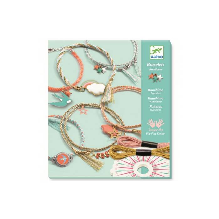 -Teje bonitas pulseras según el arte tradicional japonés del kumihimo. Un conjunto muy completo y un detallado folleto paso a paso para guiar al niño en sus creaciones. -Una bonita herramienta, adaptada a la técnica japonesa del kumihimo. -Amuletos que se usan como colgantes para decorar pulseras. -Hilos de colores y uno dorado brillante. -4 hermosos brazaletes para llevar o para regalar. -Un folleto explicativo que describe bien las técnicas y las creaciones paso a paso. Contenido: 6 amuletos, 4 colores de hilo, 12 cierres y 13 círculos pequeños de metal dorado, 1 clip (8 cm de largo), 1 disco de trenzado ilustrado y de espuma (diámetro: 10 cm) y 1 folleto explicativo paso a paso. Edad: A partir de Número de jugadores: Medidas producto: Medidas packaging: 21x24x2,5 cm